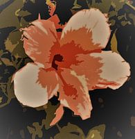 Digitaal bewerkte foto van een hibiscus. De strakke vorm in bruin en roze laat de bloem goed uitkomen. Het is een andere manier van kunst en een andere manier van kijken naar kunst en naar vormen.