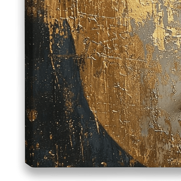 Een intrigerend schilderij toont een vrouwengezicht dat deels verdwijnt in goud en zwart effecten. De verf vloeit over haar serene gelaat, wat een gevoel van mysterie en kracht oproept. Het contrast tussen het glanzende goud en diep zwart versterkt de dramatische, bijna droomachtige uitstraling.