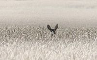 Verscholen in het graangewas maar de camera kon de ree toch nog net even vangen voor deze er snel vandoor ging. De foto is omgezet in zwart wit met een lichte naturel toning voor een zacht effect.