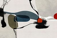 Abstract minimalistisch werk met afgeronde geometrische vormen. Gemoduleerde zwarte en witte lijnen lopen door de compositie en maken deze losser.