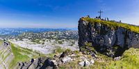 Bergwandelaar, Hoher Ifen, 2230m, en Gottesacker plateau, Allgäuer Alpen, grens Beieren, Duitsland / Vorarlberg, Oostenrijk