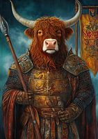 De Highland Cow als koning is een krachtig symbool voor de verbinding tussen natuur, vrede en leiderschap. Haar majestueuze verschijning daagt ons uit om onze eigen innerlijke kracht te herkennen en kalm te reageren op elke uitdaging. Deze afbeelding laat ons zien dat ware koningen niet alleen regeren door macht, maar ook door wijsheid…