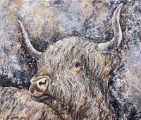 Wat een prachtig dier deze schotse hooglander. Om de karakter van de highlander zoveel mogelijk na te bootsen , heeft de kunstenaar zijn keuze gemaaakt om het kunstwerk bewerken met schildermessen. Het resultaat is verbluffend. De ruw schilderij versterkt met brio dit werk die moeten passen bij elke interieur.