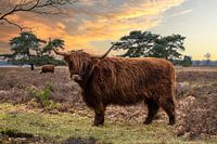 Highlander runderen grazend op de heidevelden in ons mooie Drente.