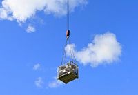 De vracht steekt mooi af tegen de blauwe wolkenlucht.