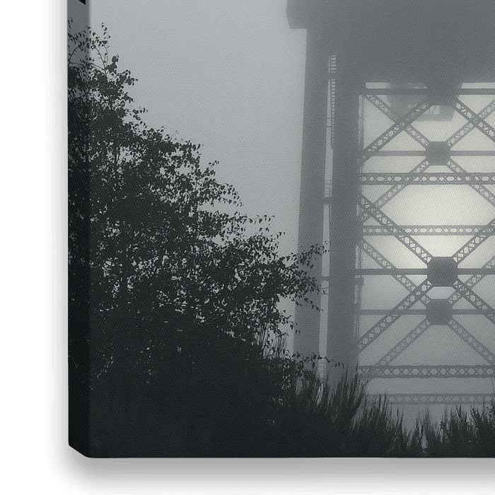 Koop de foto Hijskraan in de mist van SuperB Design op canvas, aluminium dibond, (ingelijste) fotoprint, behang en ArtFrame, op maat geprint in Fine-Art kwaliteit.
