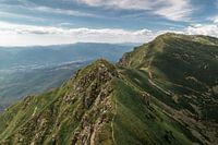 Berglandschap van Monte Marmagna in Italië. Bergwandelaar op bergtop.