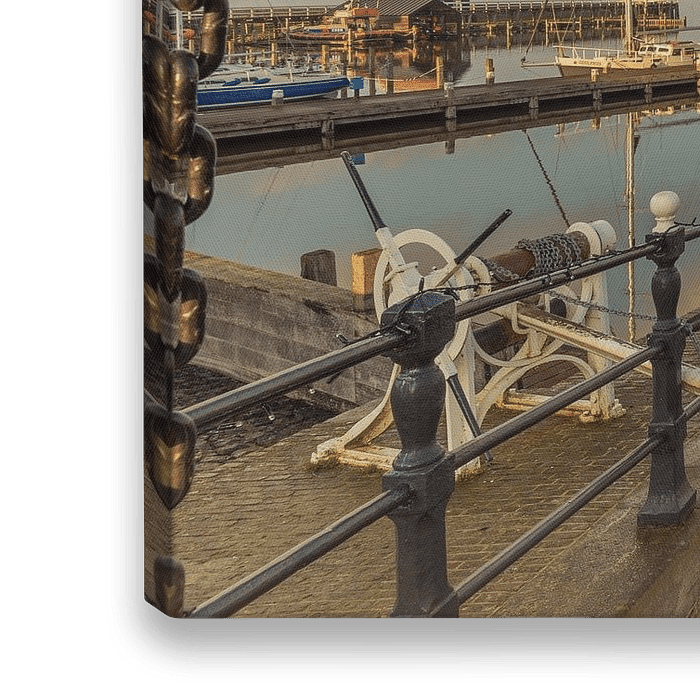Koop de foto Hindeloopen Haven: Sluiszicht met Reflecties van Boten en Wolken van KB Design & Photography (Karen Brouwer) op canvas, aluminium dibond, (ingelijste) fotoprint, behang en ArtFrame, op maat geprint in Fine-Art kwaliteit.
