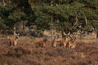 In het Nationaal Park de Hoge Veluwe, edelherten (hinden) in de heide tijdens de bronsttijd.