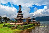 Pittoreske hindoetempel Pura Ulun Danu Bratan bij het Bratanmeer op Bali Indonesië met bewolking