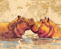 Details: nijlpaard, liefde, illustratie, water, natuur, bruin, oranje, geel, wit, abstract