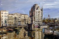 Unieke digitale schilderij van historisch Rotterdam met het Witte Huis aan de Wijnhaven in Rotterdam, ideaal als wanddecoratie. Gemaakt van een echte foto, perfect voor een indrukwekkend kunstwerk aan de muur.