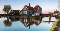 Historisch hollands huis in de Zaanse Schans bij zonsondergang. Netherland (panoramic view)Photo taken on April 16, 2018