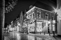 Op de hoek van de Utrechtsestraat en de Hofstraat in IJsselstein staat dit mooie historische pand. Het stamt uit de 17e eeuw. Tegenwoordig is er een visboer in gevestigd. Deze foto is een zwartwit versie van een avond opname. Er is ook een kleuren uitvoering van dezelfde foto. Zie elders in dit album.