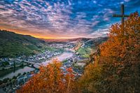 Op een prachtige vroege ochtend, onder het kruis, met zicht op de Moezel die dwars door Cochem heen loopt, langs het beroemde Reichsburg.