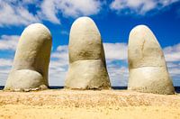 Historisch stenen beeldhouwwerk Los Dedos op het strand van Punta del Este in Uruguay