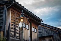 Details van huizen in een historisch straatje in Kanazawa, Japan.
