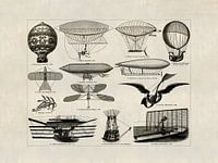 Illustratie van historische vliegtuigen en heteluchtballonnen