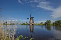 Historische Nederlandse windmolens op de polders in Kinderdijk, Zuid-Holland, Nederland, UNESCO-werelderfgoed