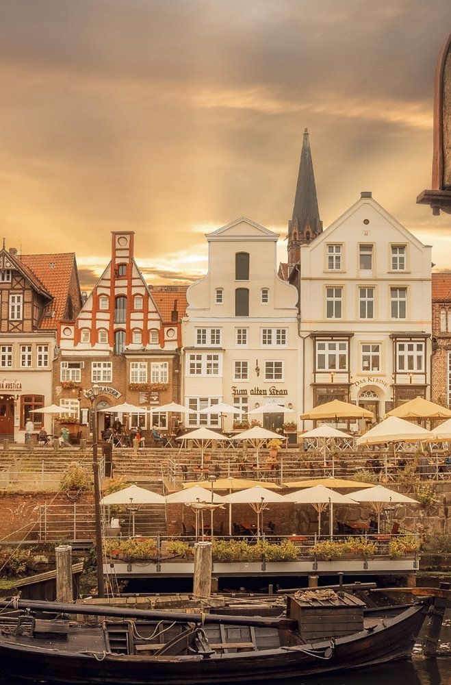 Uitzicht op de historische haven van Lüneburg vanaf Alter Kran
