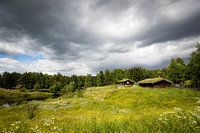 Historische houten huisjes in Noorwegen, waar het leven vroeger niet makkelijk was in verband met de veelal barre weersomstandigheden.