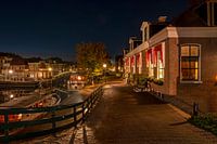 Historische huizen in Sneek Friesland bij avond in Nederland
