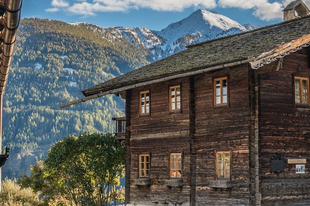 Historische huizen in het dorpscentrum van Obermauern, Virgental, Oost-Tirol, Tirol, Oostenrijk