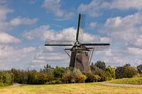 Historische molen in een Hollands landschap met een fraaie wolken lucht.