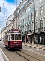 Historische tram in het historische centrum van Lissabon, Portugal.