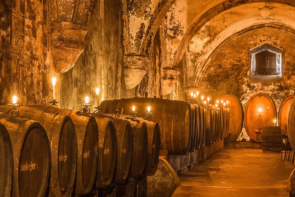 Historische wijnkelder van het cisterciënzerklooster Eberach bij Kiedrich, Rheingau, Hessen, Duitsland