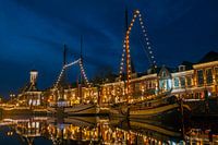 Historische zeilschepen in de haven van Dokkum in Friesland Nederland in de kersttijd