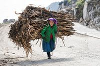 Deze vrouw heb ik gefotografeerd in de bergen in het noorden van Vietnam in de regio Ha Giang. Ze droeg een grote last op haar rug van gedroogde maisstengels die gebruikt worden als brandstof. De vrouw behoort tot de etnische minderheid van het Hmong bergvolk dat oorpronkelijk uit China komt. Je herkent ze onder andere aan hun kleurige klederdracht en hoofdbedekking.