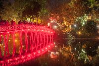 Ha noi Vietnam. Illuminated The Huc bridge on Hoan Kiem Lake.