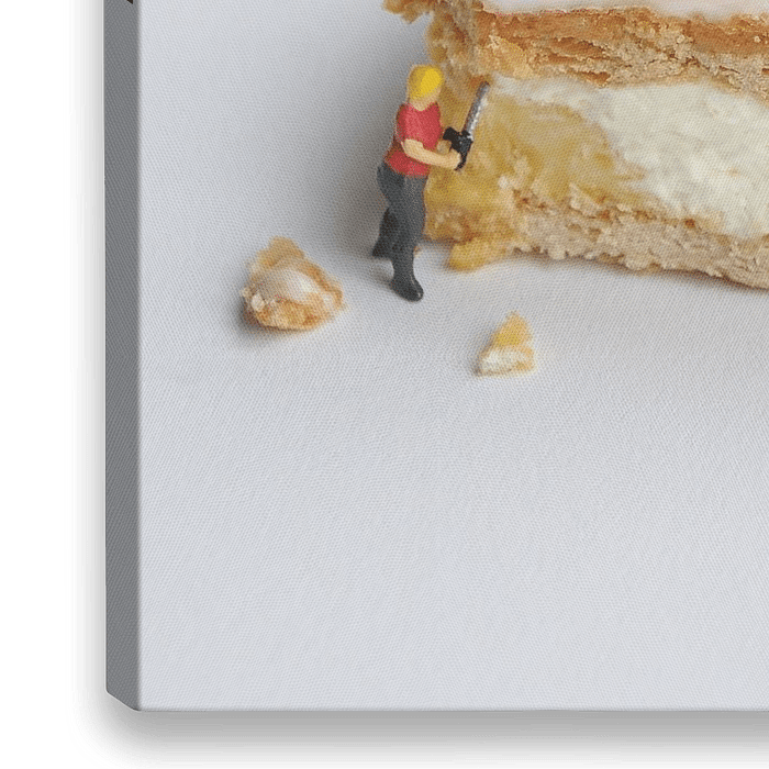 Vraag jij je ook altijd af hoe je een Tom Pouce op kunt eten? Deze poppetjes kunnen je wellicht helpen. Grappige foto van miniatuurfiguurtjes (H0) die aan het werk zijn om een oer-Hollands Tompouce gebakje op te ruimen. Een man helpt de slagroom eraf te scheppen, de buurman maait het roze glazuur eraf, het bladerdeeg en de gele…