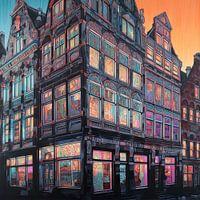 Schilderij Hoekwoning In Amsterdam In Kleur - Hoekwoning in Amsterdam in kleur is een prachtige abstracte schilderij die de sfeer van wonen en leven in Amsterdam weergeeft. Het is een kleurrijke impressie van de historische stad, met mooie kleuren en een levendige compositie. Het kunstwerk is perfect voor je woonkamer en het geeft je een gevoel van rust en vreugde. Het is een kunstwerk dat je blij maakt om naar te kijken en dat je steeds weer opnieuw laat genieten van de schoonheid van Amsterdam.