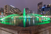 De Hofpleinfontein mooi Rotterdams groen verlicht.
