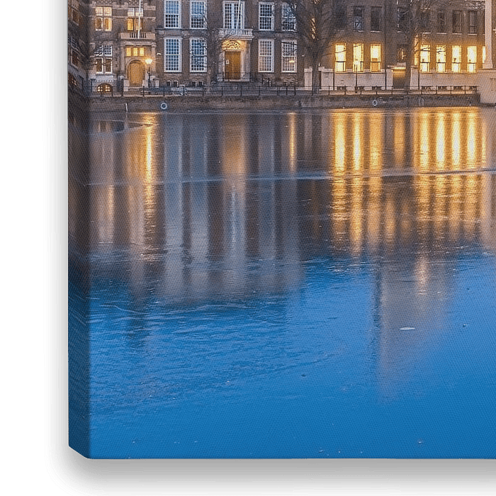 De hofvijver met uitzicht op het Binnenhof in Den Haag (Zuid-Holland, Nederland). Vanuit hier wordt Nederland bestuurd. Iedere avond wordt het regeringsgebouw verlicht. Deze locatie stond al langer op het lijstje, van de week kwam het er van!
