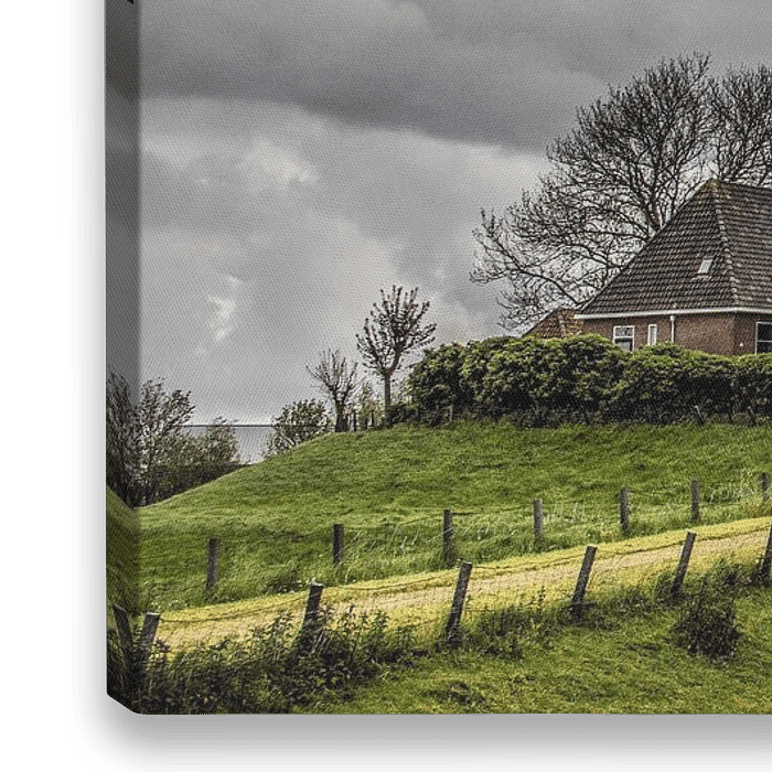 Koop dit landschapskunstwerk Hogebeintum, de hoogste terp van Friesland met een zware lucht. van Harrie Muis op canvas, aluminium dibond, (ingelijste) fotoprint, behang en ArtFrame, op maat geprint in Fine-Art kwaliteit.