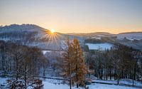 Zonsopgang over de Hohe Knochen, winter in Schmallenberg, Sauerland, Duitsland