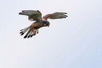 Een torenvalk (Falco tinnunculus) is aan het loeren op een prooi.