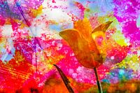 Ditmaal geen uitgestrekte bollenvelden van de Keukenhof; maar een collage van molen, tulp en twee kleurijke schilderijen van mij.