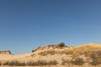 De top van de duinen die deel uitmaken van de kustbescherming ter hoogte van Meijendel. Boven het duin staat een strakblauwe lucht.