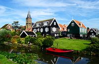 Een typisch Hollands landschap in een van de meest iconische dorpen van Nederland - Marken.