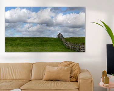 Een typisch Hollands beeld. Een dijk, prachtige wolkenluchten en een hek.