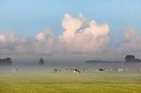 Hollands nevelig landschap met grazende koeien en een typisch nederlandse wolkenlucht. Wout Kok One2expose.