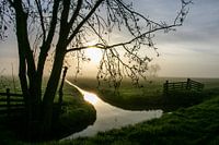 Hollands polderlandschap tijdens zonsopkomst in het vroeg voorjaar . Een sfeervol beeld met karakter, heerlijk voor aan de muur.