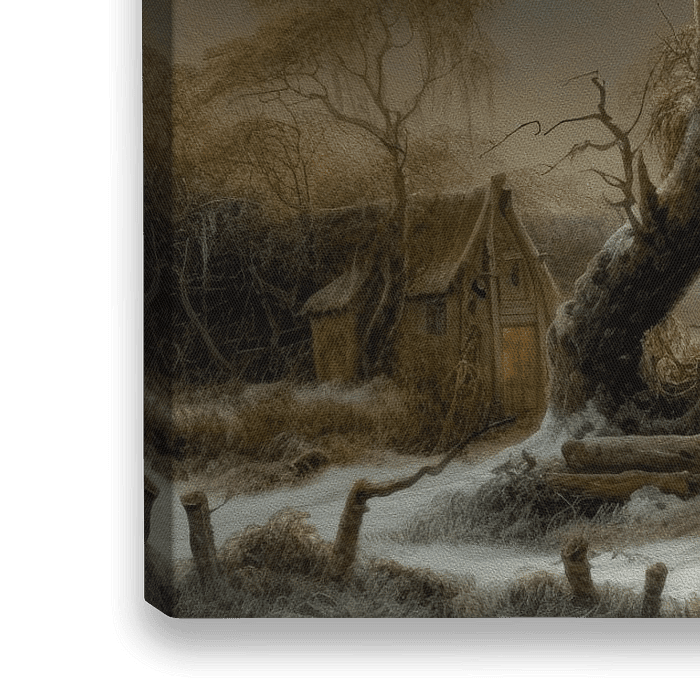 Op het schilderij is een prachtig winterlandschap te zien uit de 18e eeuw. In het tafereel staat een oude boerderij. Er ligt een serene stilte over het landschap. Op het schilderij is verder een bevroren rivier te zien, waarop mensen schaatsen en wandelen in de sneeuw en genieten van de omgeving. In de verte zijn besneeuwde velden en bossen te zien. De bomen zijn bedekt met een laagje sneeuw. De sfeer van het schilderij is kalm en vredig. De rustige stilte van de winter is voelbaar en de schoonheid van het landschap is adembenemend. Het schilderij is een prachtige weergave van het winterseizoen en laat de kijker genieten van de natuurlijke schoonheid van het koude seizoen in de 18e eeuw.