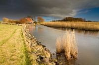 Dit mooie typisch hollandse dijkhuisje staat op de IJsselmeerdijk in de buurt van Molkwerum, Friesland. Ik heb deze opname in de winter gemaakt, op een dag met prachtige buienluchten. Op de achtergrond nadert weer een nieuwe hoeveelheid neerslag, terwijl het huis door de ondergaande zon nog mooi uitgelicht wordt.