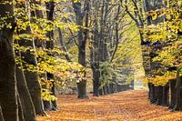 Kleurenpracht, tijdens de herfst, in het Amerongse bos op de Utrechtse Heuvelrug! Heerlijk bospad vol in kleur, wandelend op een tapijt van Oranje!