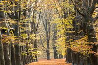 Prachtige herfst kleuren in een magnifiek bomen laantje! Tijdens de herfst, in het Amerongse bos op de Utrechtse Heuvelrug! Heerlijk bospad vol in kleur, wandelend op een tapijt van Oranje!